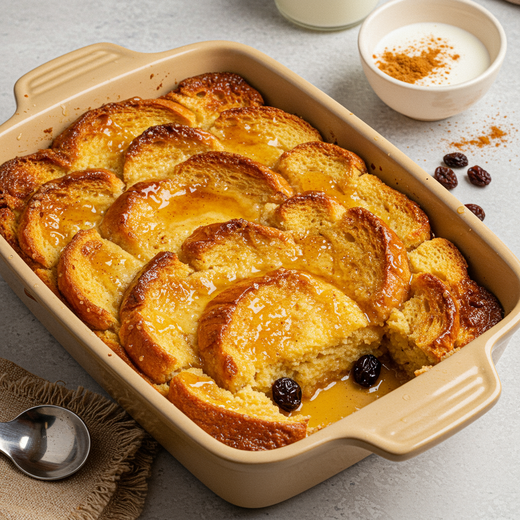- Bake: Place the baking pan in the preheated oven. Bake for 45-60 minutes, or until the pudding is set, golden brown on top, and a knife inserted into the center comes out clean (or with just moist crumbs, not liquid batter). The edges should be slightly puffed and firm.